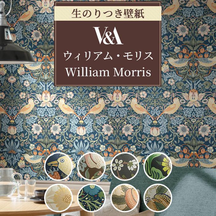 壁紙 のり付き ウィリアム モリス 花柄 グレー 青 黄色 クロス 15柄 フェミニン エレガンス 生