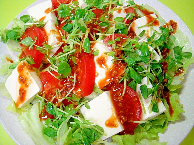 豆腐とトマト豆苗のサムジャンドレッシングサラダ レシピ 作り方 By Mint74 楽天レシピ